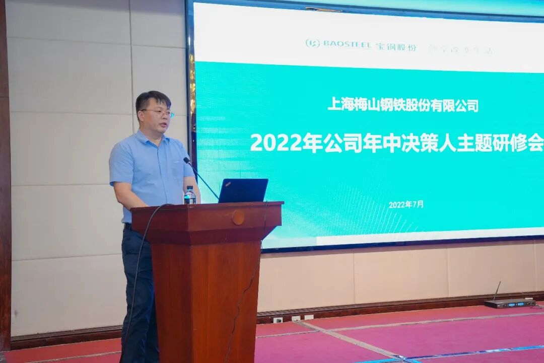 梅钢公司经营绩效跑赢大盘,成本削减完成年度目标的296%,吨钢利润集团内累计排名第4,资产效率站稳国内同行第一方阵,ROE(净资产收益率)国内钢铁行业分位值84;制造运行稳健提升,高效精准完成钢轧产量计划,“三降两增”工作积极有效,界面效率提升明显,重难点指标完成较好,“321+X”精品销量占比较2021年同期提高6.95%;费用管控成效显著,实绩较管控目标低51元/吨钢,强有力地支撑了公司上半年经营业绩;改革号角已经吹响,购销协同持续突围,模拟经营绩效变革开始破题,数字化转型全线布局,基层组织变革打桩奠基,变革创新驱动劳动效率提升,高质量协作生态圈逐步建成;产城共融快速进展,达A项目进入全面施工攻坚阶段,专项宣传策划持续提高地方政府以及社会大众对梅钢高科技企业属性和高质量发展成果的认知,以梅钢工业文化旅游区为平台累计接待社会各界来访超5000人次;风险管控严密有序,统筹抓好疫情防控和生产经营,高质量完成宝山基地炼钢厂生产支援任务,梅钢公司成为钢铁行业全专业安全生产标准化一级企业,完成重大风险隐患排查、经营业务合规与内控建设自查、信息系统授权管理专项检查等工作。
