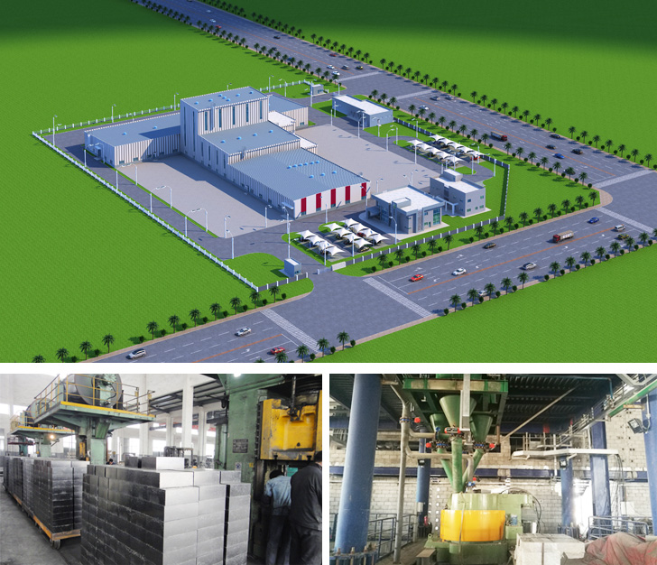 工程生产所用原材料:熔成和全烧菱镁石、熔融氧化铝、全烧铝土矿、天然鳞片石墨、金属及碳化添加剂、液体酚醛树脂和固体酚醛树脂。