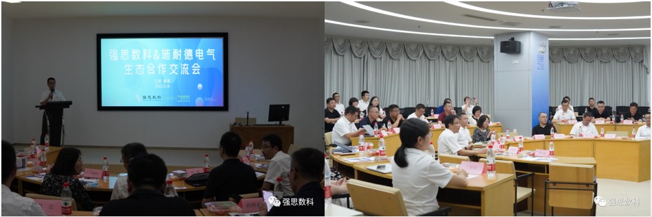 2022年8月18日,施耐德电气PA总经理乔锃先生、DCC总经理丁晓红女士等26位领导专家参加“强思数科&施耐德电气市场推进会”,强思数科董事长丁宏翔先生及公司核心领导、客户中心商务经理共同参加接待。
