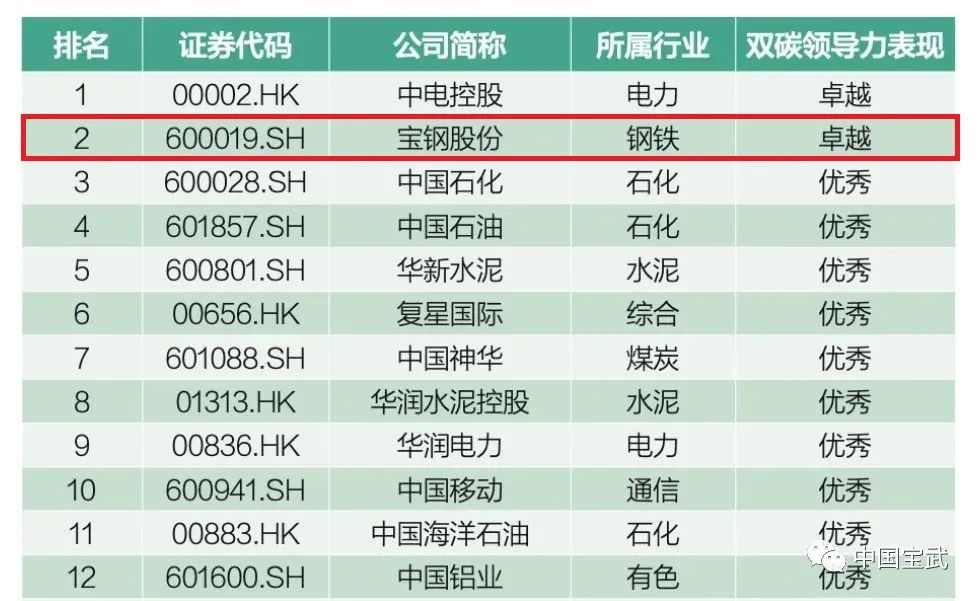 近日,《财经》杂志会同中创碳投等联合发布《中国上市公司双碳领导力排行榜(2022)》。宝钢股份获得最高等级评价——“卓越”,百家公司中仅有两家获评该等级。