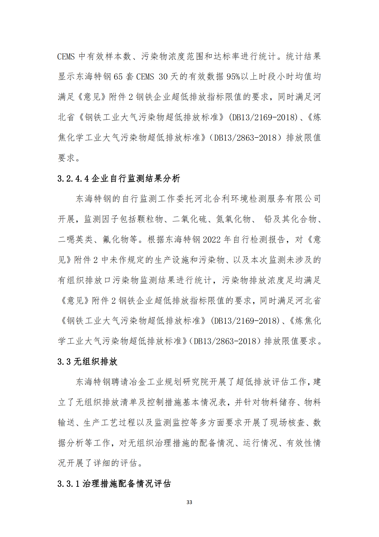 河北东海特钢集团有限公司超低排放改造和评估监测进展情况公示内容