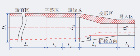中频热扩用的芯棒:分成导向区、变形区、定径区、平整区和矫直区