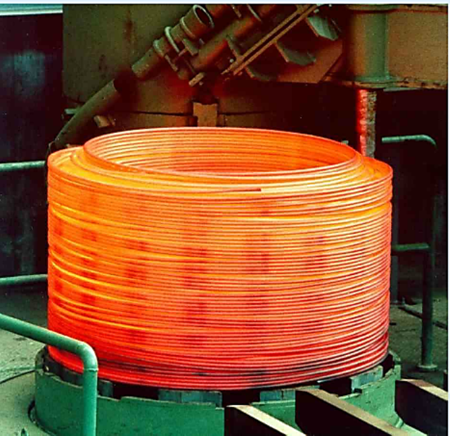 大盘卷线材生产线最大规格Φ42.5mm,采用三辊减定径机组出成品,可实现自由尺寸轧制,尺寸精度符合德国?DIN标准,具备较强的低温轧制能力,最低轧制温度≤750℃。