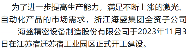 副会长单位海容激光子公司宿迁精密设备制造股份有限公司顺利开工
