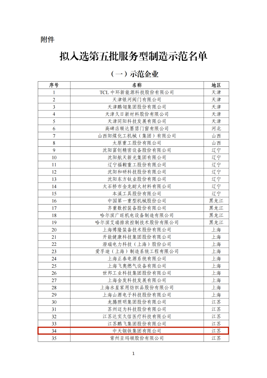 11月16日,工信部发布第五批服务型制造示范名单公示。其中,中天钢铁集团有限公司、法尔胜泓昇集团有限公司上榜。公示全文如下: