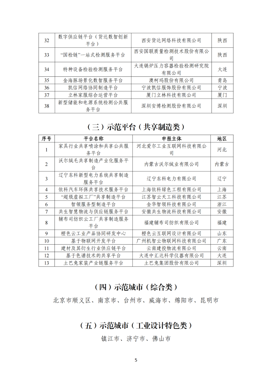 根据《关于开展2023年服务型制造示范遴选和评估评价工作的通知》(工信厅政法函﹝2023﹞42号),现将拟入选第五批服务型制造示范名单进行公示,请社会各界监督。如有异议,请在公示期内将意见书面反馈(单位提出意见需加盖公章)至工业和信息化部产业政策与法规司(产业融合发展处)。