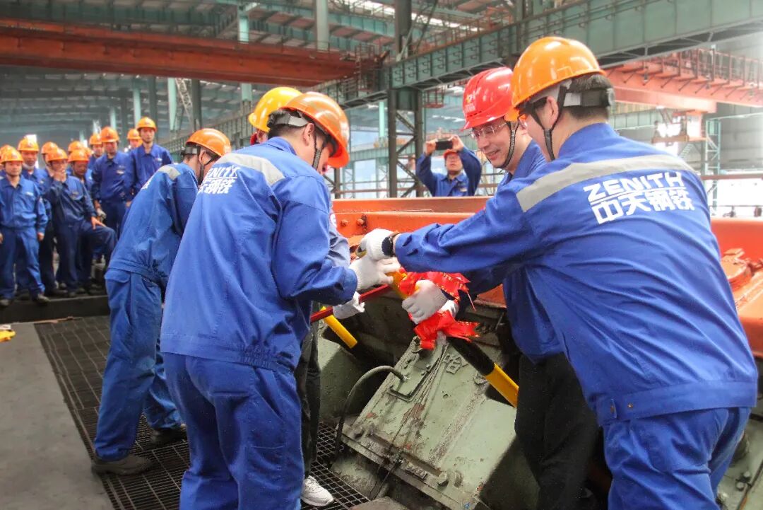7月1日上午,国际首条配置PSM的高线/大盘卷生产线技改工程项目在中天钢铁八轧厂五线正式开工建设。项目建成后,可采用三辊减定径机直接生产大规格线材产品,轧制速度高达42m/s,精度达±0.1mm,属全球首创。