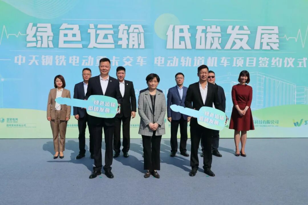 本次除交付电动重卡半挂车外,现场签署的电动轨道机车改造项目还将用于中天钢铁厂区铁水运输。