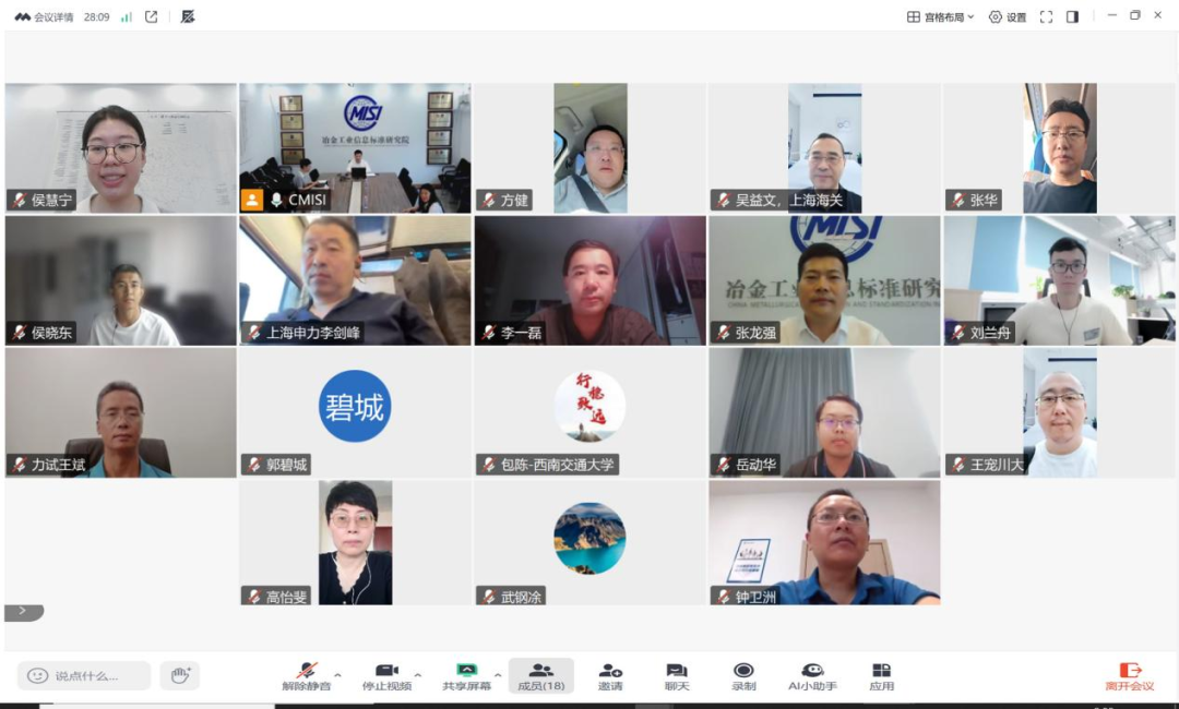 8月18日,2025年ISO/TC164“金属力学试验”技术委员会所属四个分技术委员会全会国内预备会以网络会议形式召开。来自冶金工业信息标准研究院(以下简称:信息标准院)、钢研纳克检测技术股份有限公司、宝山钢铁股份有限公司、上海海关工业品与原材料检测技术中心、中国计量科学研究院、武汉钢铁有限公司、中国工程物理研究院总体工程研究所、中国核动力研究设计院、西南交通大学、四川大学、力试(上海)科学仪器有限公司、上海申力试验机有限公司等12家单位的17名专家代表参加了此次会议。信息标准院党委书记、院长张龙强作为中国代表团团长出席会议并致辞。