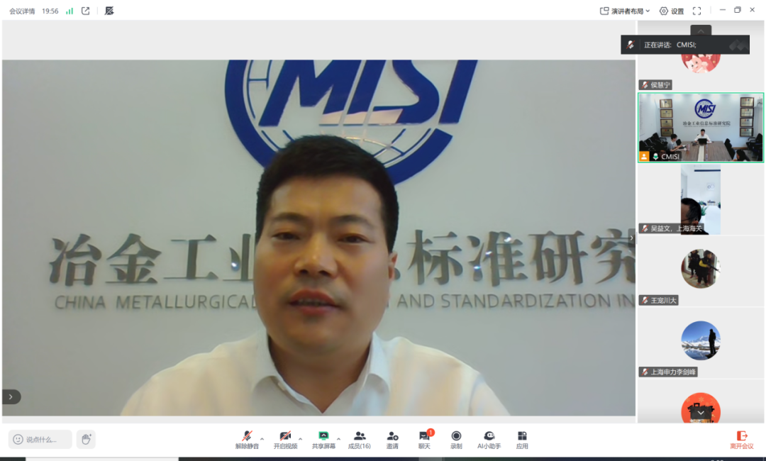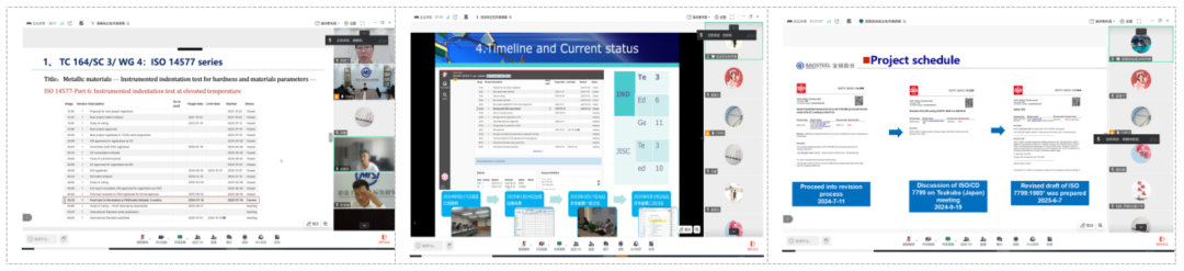 网络会议截图 张龙强院长在致辞中指出,我国参与力学领域国际标准化工作成果丰硕。自90年代初深耕至今三十余年,在ISO/TC164中已牵头制修订14项国际标准,2025年又成功立项2项具有重要技术突破的标准制定项目,在ISO/TC164的四个SC均实现零的突破,标志着我国在力学领域国际标准化工作逐步实现了从“标准执行者”到“标准制定者”的身份转变。他提到,作为黑色冶金领域28个国际标准化技术组织的国内对口单位,信息标准院今年上半年公开征集细分领域专家组建国内对口委员会,这一举措既是落实国标委加强国际专家管理要求的具体行动,也是对接ISO推行OSD数字化转型的前瞻布局,旨在凝聚智慧、为我国参与国际标准竞争提供广阔平台。最后,他强调了“守规矩、强责任、重实效”的参会纪律,勉励力学领域国际专家乘势而上、再创佳绩,为持续提升我国国际标准化工作影响力贡献力量。 中国代表团团长张龙强致辞 本次预备会上,ISO/TC164/SC1~SC4国内对口单位信息标准院介绍了2025年国际会的计划安排,会议讨论了我国牵头在研的ISO/FDIS 14577-6《金属材料 硬度和材料参数的仪器化压入试验 第6部分:升温仪器化压入试验方法》、ISO/DIS 1099《金属材料 疲劳试验 轴向力控制方法》、ISO/CD 7799《金属材料 薄板和薄带 反复弯曲试验方法》、ISO/WD 26203-3《金属材料 高应变速率拉伸试验 第3部分:高温试验方法》及ISO/AWI 24270《金属材料 薄板和薄带 二次加工脆化试验方法》等5项国际标准项目。 中国计量科学研究院侯晓东博士作为ISO/TC164/SC3/AG1“不确定度”、ISO/TC164/SC3/WG5 “维氏硬度试验—努氏硬度试验”工作组召集人,钢研纳克检测技术股份有限公司高怡斐博士作为ISO/TC164/SC4/WG5 “通用条件下的疲劳试验”工作组召集人,对我国承担的三个国际工作组工作进行了汇报并提出了下一步工作建议。 会上,与会专家还对《金属材料 高应变速率动态断裂韧度试验方法》等国际标准新项目提案展开了深入讨论与交流,推动力学领域国际标准化工作可持续发展。 中国专家作项目汇报 最后,中国代表团成员对参加ISO/TC164会议周期间各会议的主要职责进行了分工,为国际会议的顺利召开奠定坚实基础。 2025年ISO/TC164“金属力学试验”所属四个分技术委员会年会将于2025年9月15日至19日在法国召开。作为ISO/TC164/SC1~SC4的国内技术对口单位,信息标准院将继续努力、积极履行国内技术对口单位职责,充分发挥我国力学领域利益相关各方优势,为我国专家持续深度参与ISO/TC164国际标准化工作、不断提升我国在力学领域国际影响力提供更专业、更及时、更权威的服务,推动我国力学领域国内国际标准化工作高质量发展。