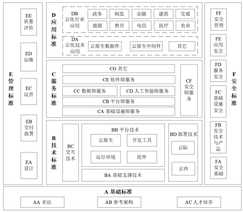 “云化技术应用” 标准(如云原生数据库、中间件)旨在解决技术之间的协同问题。