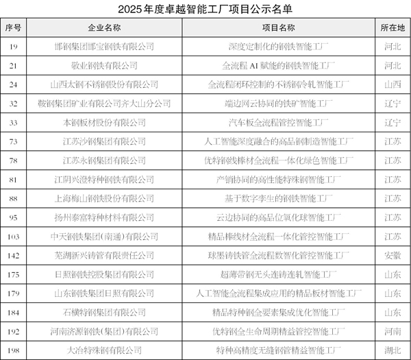 9月4日,工信部网站发布《关于2025年度卓越级智能工厂项目的公示》(以下简称《公示》)。据《中国冶金报》记者不完全统计,钢铁行业有17个卓越级智能工厂项目上榜,叠加今年初发布的首批19个项目,钢铁行业共计已有36家卓越级智能工厂。