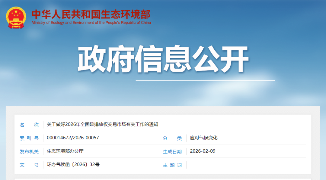 原文链接:关于做好2026年全国碳排放权交易市场有关工作的通知