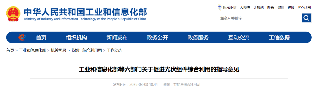 工信部等部门发布《关于促进光伏组件综合利用的指导意见》