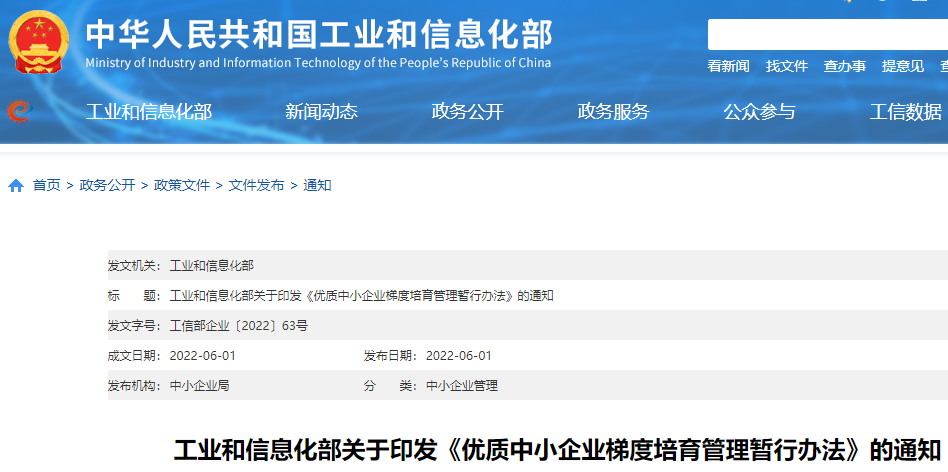 6月1日,工信部印发《优质中小企业梯度培育管理暂行办法》,全文如下: