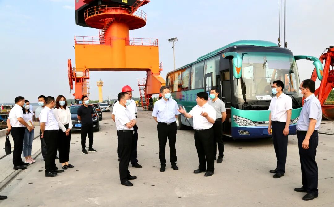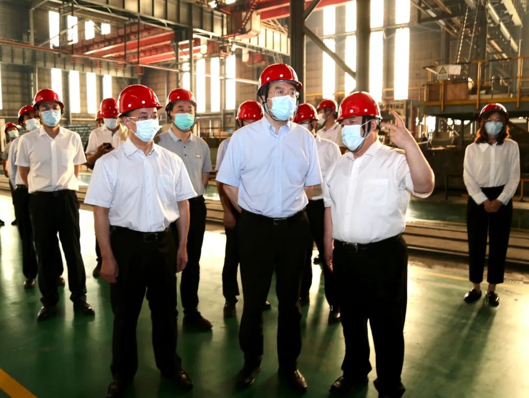 在江苏飞达集团下属中冶东方江苏重工有限公司,郭建主席一行走进生产车间,集团董事长朱国平向大家介绍了近年来废钢循环利用和推进绿色低碳短流程炼钢取得的成绩。随后,郭建主席一行前往飞达码头,详细了解企业常态化疫情防控、项目建设,以及企业对长江岸线的保护与利用情况。