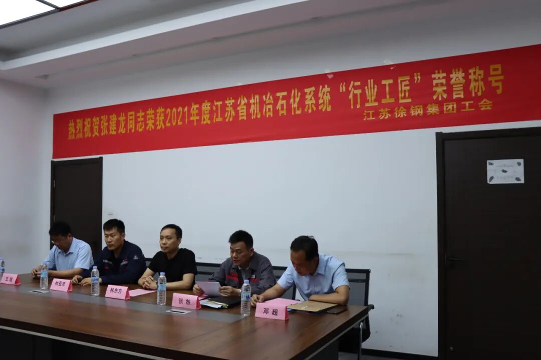 为认真学习贯彻习近平新时代中国特色社会主义思想、党的十九届五中全会和习近平总书记在全国劳模和先进工作者表彰大会上的重要讲话精神,大力弘扬劳模精神、劳动精神和工匠精神,在全社会营造“劳动光荣、技能宝贵、创造伟大”的良好氛围, 2021年省机冶石化工会在全系统行业中开展了“行业工匠”推荐学习活动,经层层选拔、网络投票、专家评审,最终,江苏徐钢钢铁集团新炼铁一厂的张建龙荣获江苏省机冶石化系统“行业工匠”称号,成为2021年度全省机冶石化系统30名“行业工匠”之一。