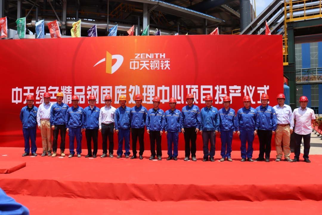 中天绿色精品钢固废中心以总承包模式建设,包括年处理能力25万吨的转底炉生产线、年生产能力30万吨的均质化生产线、年处理能力10万吨的冷压块生产线和年处理能力40万吨的氧化铁皮筛分生产线,是中天绿色精品钢基地实现固废零出厂和尘泥资源化利用的重要单元。 中天绿色精品钢固废处理中心项目采用了以转底炉为核心的含铁含锌固废绿色高效处置技术集群,可实现固废零排放,助推中天钢铁实现绿色发展。 中天绿色精品钢固废处理中心项目于2020年9月开始打桩,均质化和氧化铁皮筛分生产线已于2021年12月开始相继投产,转底炉生产线于2022年6月11日投产。