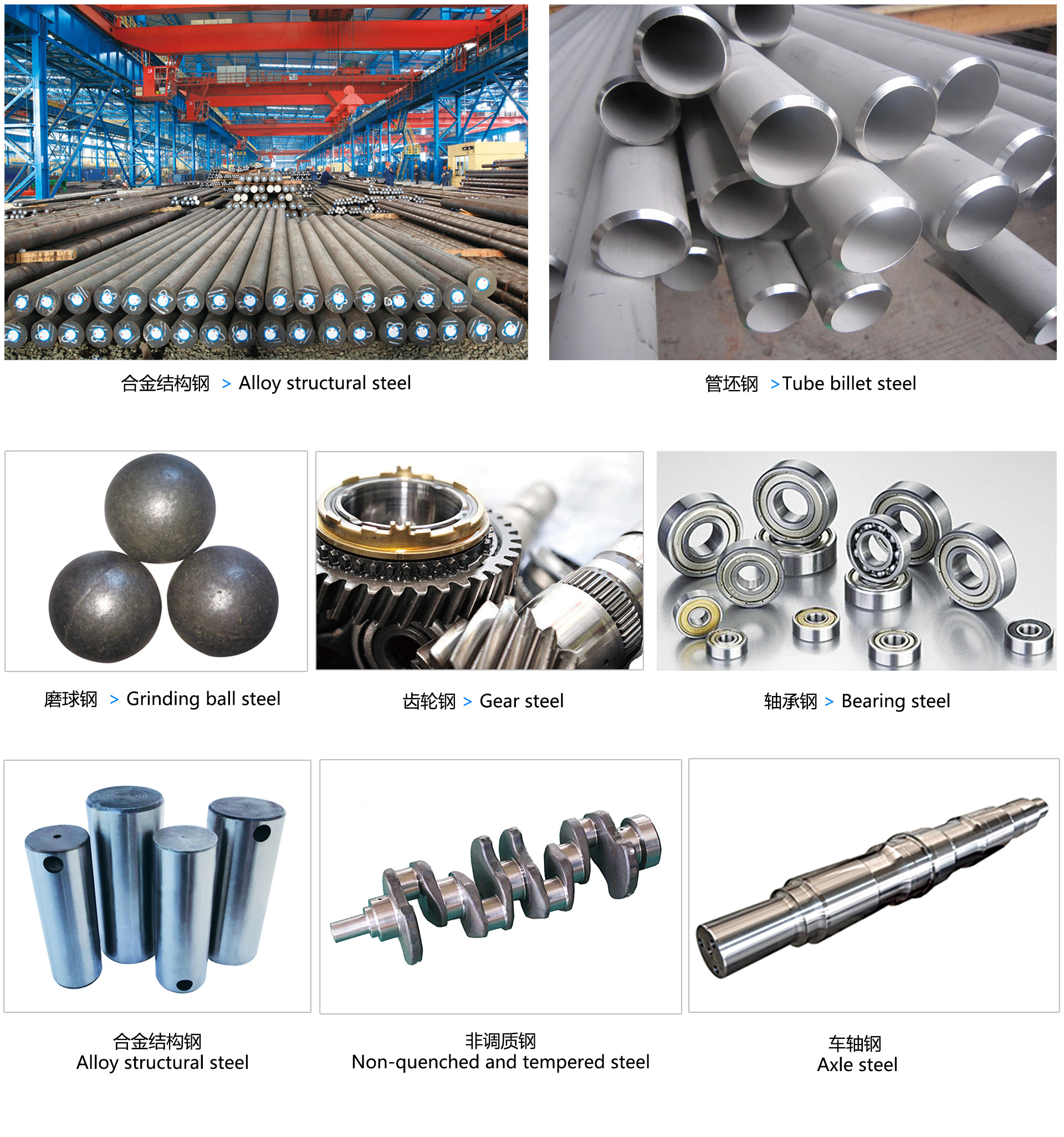 | 4 | 管坯钢 Tube billet steel | 20G SA106B/C 15CrMoG 25CrMo 27CrMo-F 27CrMo44 29CrMoVNb 30CrMo 12Cr1MoVG 12Cr5Mo T11 T22 WB36 15Ni1MnMoNbCu T5 10Cr9Mo1VNbN T91 | Ф20~350 | YB/T 5137 GB 5310 YB/T 5221 API 5CT 技术协议 | 用于制作石油开采、天然气传输、火力发电等工业领域的钢管。 Used to make steel pipes for oil exploitation, natural gas transmission, thermal power generation and other industrial fields. |