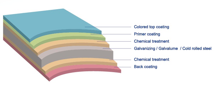 彩涂钢的母材为镀锌钢、镀铝锌钢和冷轧钢,表面光滑细腻,通过多种油漆和基材的组合使用,选择满足特定需求的颜色和材料性能。改进了用户工厂的流程、空间、能源和负载节省等因素。